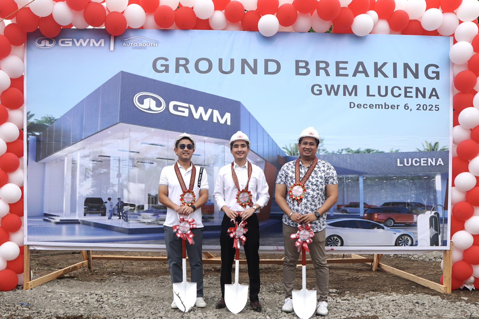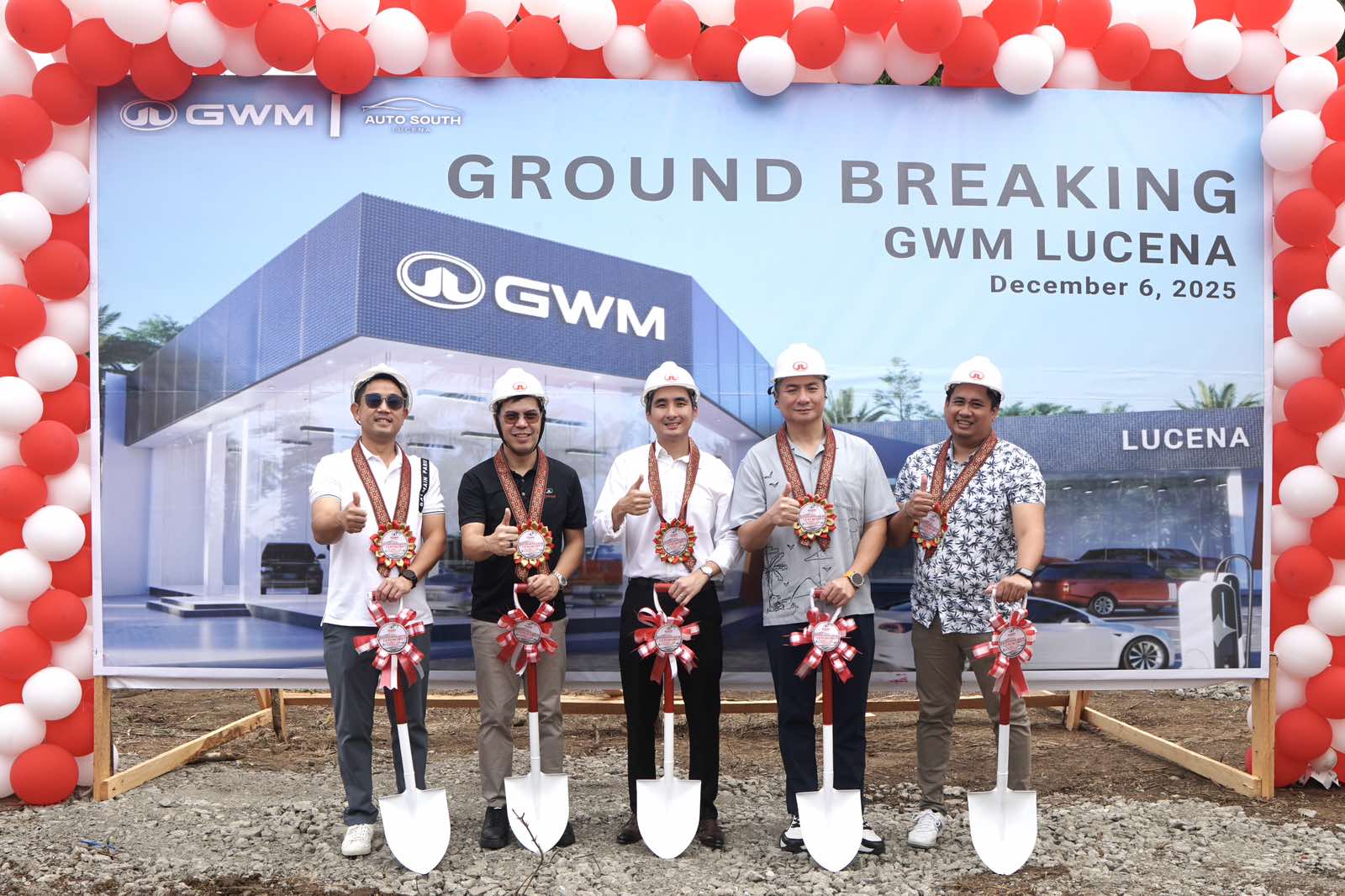 Auto Lucena South Inc., led by President Patrick Licup, has officially broken ground on GWM Lucena, its first dealership in Quezon Province. The ceremony was attended by key partners and supporters, including Mr. Harry Licup, Mr. Ken Pasumbal, Mr. Ruben Tan, and Mr. Dax Avenido.